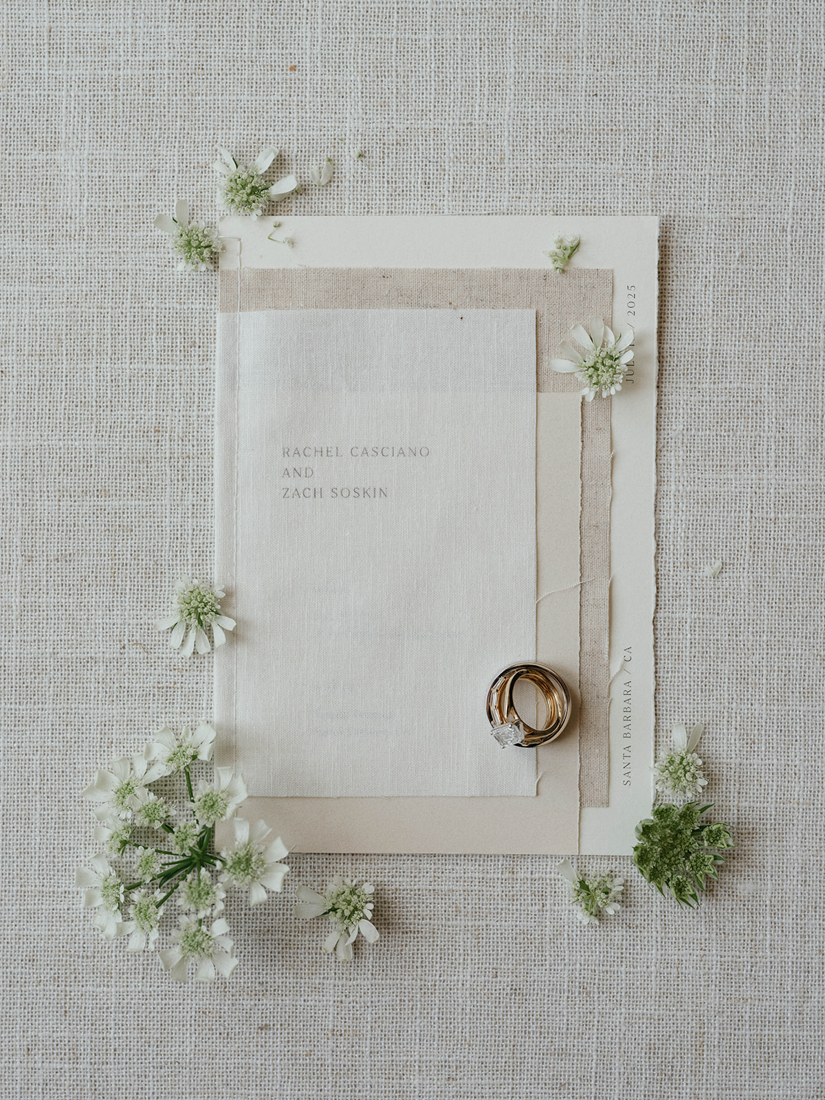 As a Santa Barbara wedding planner, designer, and florist, I find that private estates can offer lots of flexibility for site-specific design. Rachel and Zach’s wedding at a private estate in Carpinteria was designed to highlight the coastal landscape, utilizing natural textiles and organic textures to complement the Pacific Ocean views.