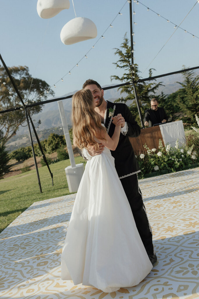 Dance Floor: A custom painted tile dance floor served as a central focal point, drawing inspiration from classic California coastal architecture.